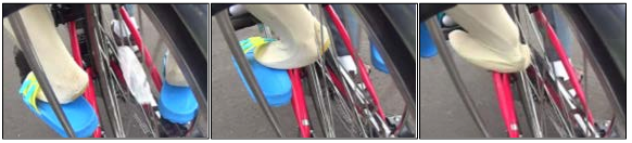 図2:子どもの足が自転車の車輪に巻き込まれる様子・ダミー人形での実験(参考資料2)